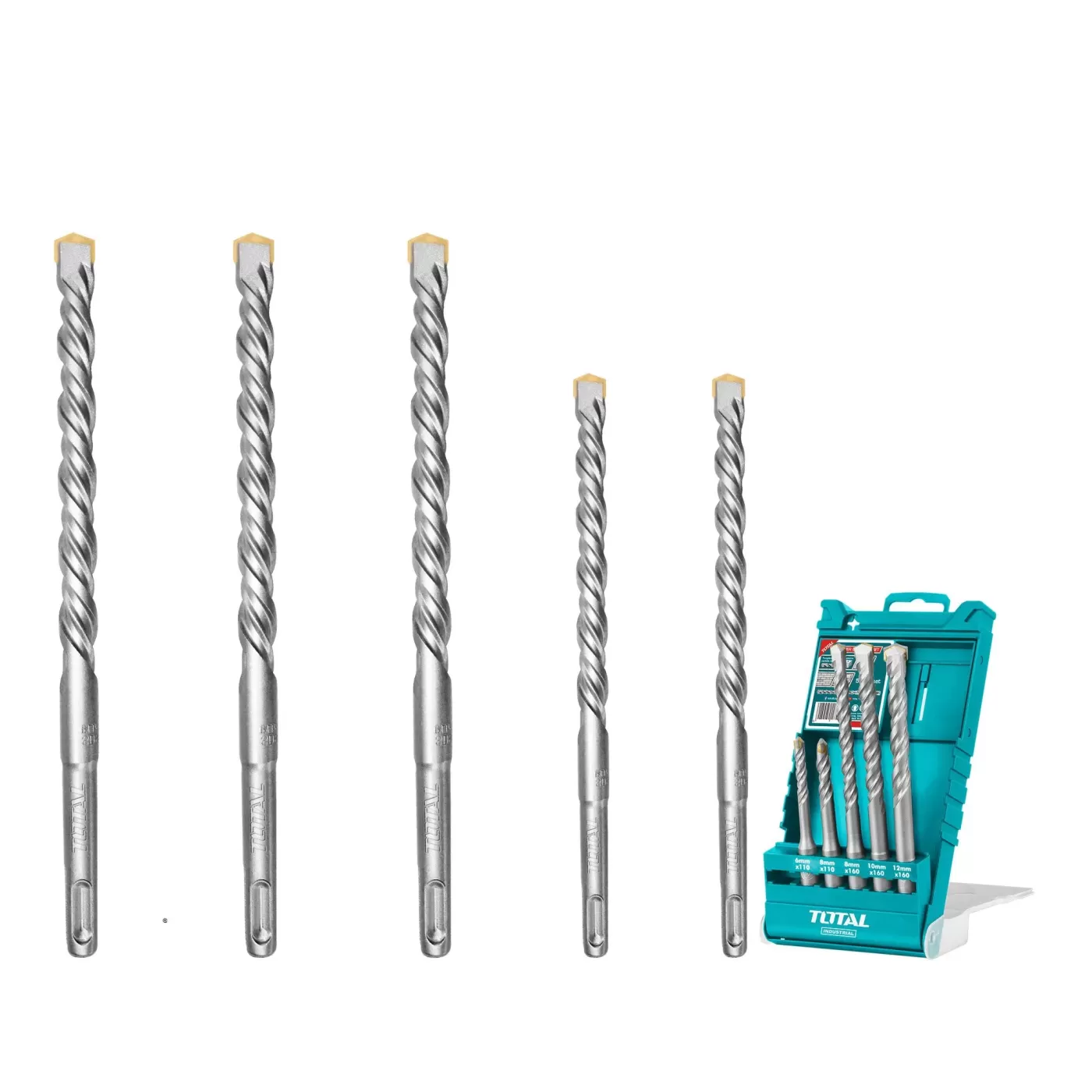 A TOTAL TAC190501 fúrószett kemény anyagok, mint például beton, tégla, kő stb. megmunkálására szolgál. Különösen az SDS plus fogazatú kalapácsokhoz tervezték.