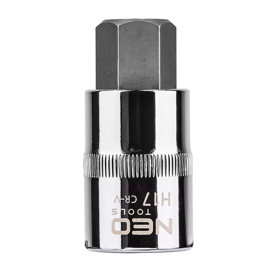 NEO 1/2"-os Imbusz bit dugókulcs, 55 mm hosszú, a DIN 7422 szabványnak megfelelő. A dugóadapter nagy ellenállóképességű króm-vanádium acélból készül. A hatlapú bit kiváló minőségű S2 acélötvözetből készül. A szerszám minőségét bizonyítja a TÜV tanúsítvány és a gyártó által nyújtott 25 éves jótállás. A NEO márka a professzionális igényeket is kielégíti.